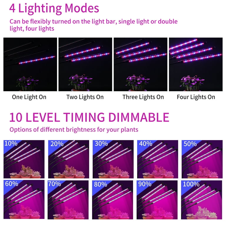 Tuoy 84 Led Grow Lights For Indoor Plants Red Blue Spectrum Auto On Off 4 Head Clip On 4 8 12h Timer 10 Dimmable Level Grow Light With Dc Adapter Walmart Com