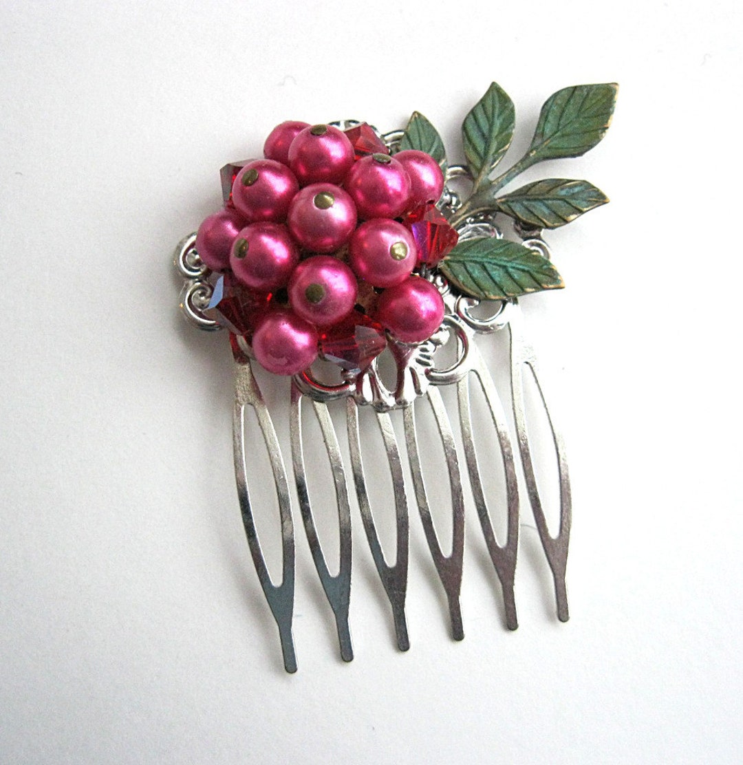 Dark Pink Floral Hair Comb Vintage Earring Hair Comb Bride Etsy